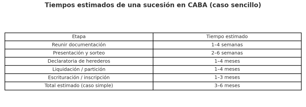 Descubrí cuánto tarda hoy una sucesión en CABA: plazos por etapa, costos orientativos y cómo agilizar el trámite.