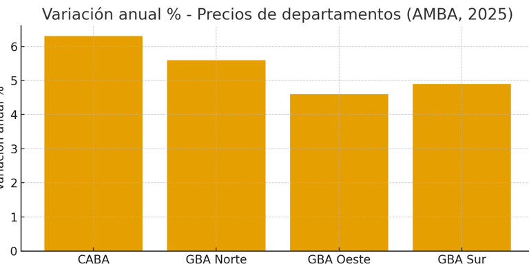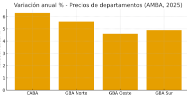 Efecto en precios: crecimiento moderado (un dígito en % en promedio para AMBA), con Zona Norte liderando la revalorización por su combinación de oferta limitada y demanda sólida.
